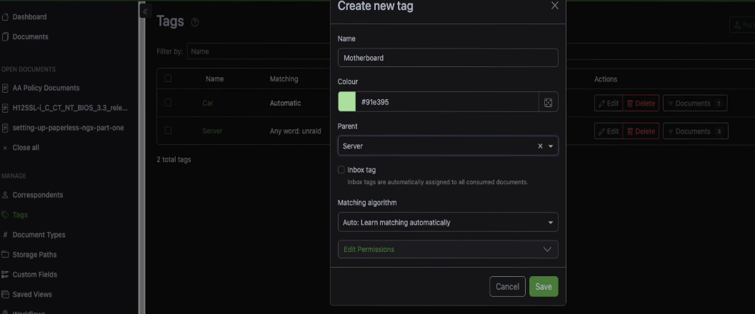 Head over to your Paperless web interface and check your documents. You should see a load of new tags that the AI has applied based on each document's content. If you can remember what the tags looked like before, there should be noticeably more now.